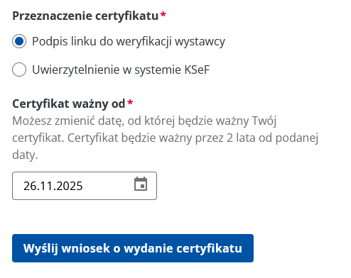 Certyfikat do pracy w trybie offline (do oznaczania faktur kodem):